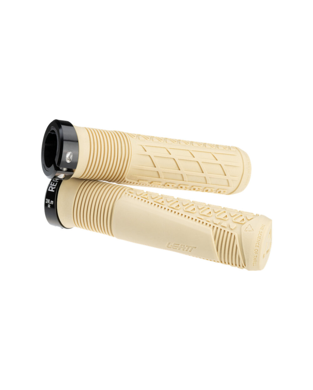 Kužeľový profil s premenlivým priemerom s väčším množstvom materiálu na vonkajšom okraji, kde dochádza k väčšiemu kontaktu, znižuje tlak ruky a zlepšuje ďalšie tlmenie. Mäkké, pružné rebrá okolo palca a ukazováka zlepšujú priľnavosť a zabraňujú skĺznutiu. Polovičné vafle a trojuholníkové bloky behúňa poskytujú extra trakciu prstov a kontrolu. Rozhranie rukoväte je mäkké a sľubuje dobrú rovnováhu medzi hmatovým pocitom a odolnosťou. Konce tyčí na ochranu pred nárazmi chránia riadidlá, autá a steny. Dostupné v dvoch priemeroch (bežný 31 mm a tenký 29 mm), ako aj 4 farby