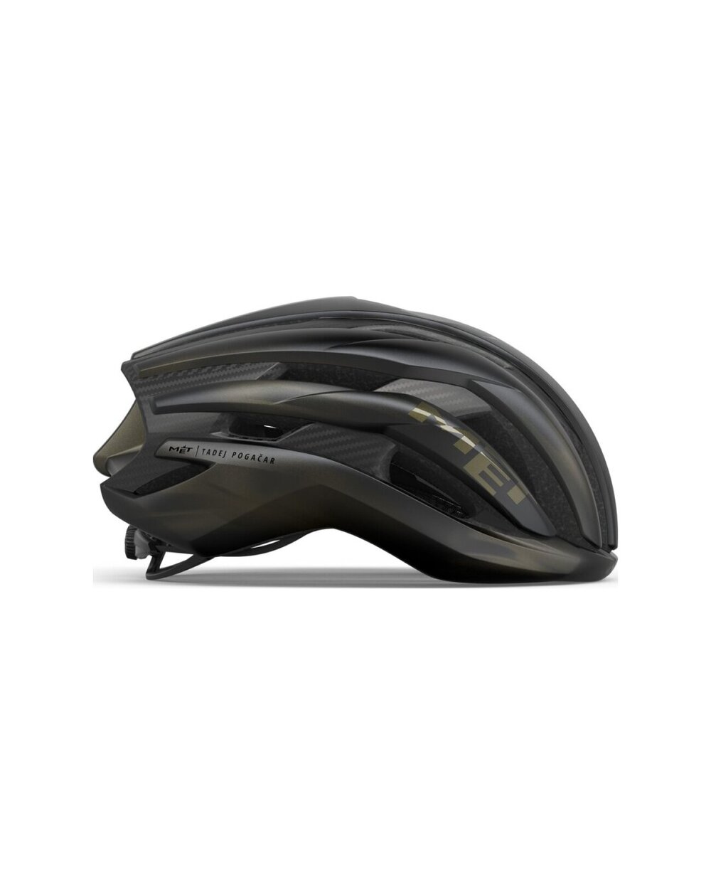 MET Trenta 3K Carbon Blačk Edition predefinuje našu najpokročilejšiu cestnú cyklistickú prilbu s novým, exkluzívnym dizajnom vytvoreným pre Tadeja Pogačara. Táto Blačkova edícia oslavuje zlatú éru súčasnej cyklistiky a jej slávnu hviezdu Tadeja Pogačara – prirodzený talent a podstatu skutočného šampióna. Jeho aerodynamický a inovatívny profil je teraz výraznejší a rafinovanejší, s jedinečnou farebnou kombináciou čiernej, ktorá symbolizuje eleganciu a autoritu, a zlatej, ktorá predstavuje sezónu plnú víťazstiev.