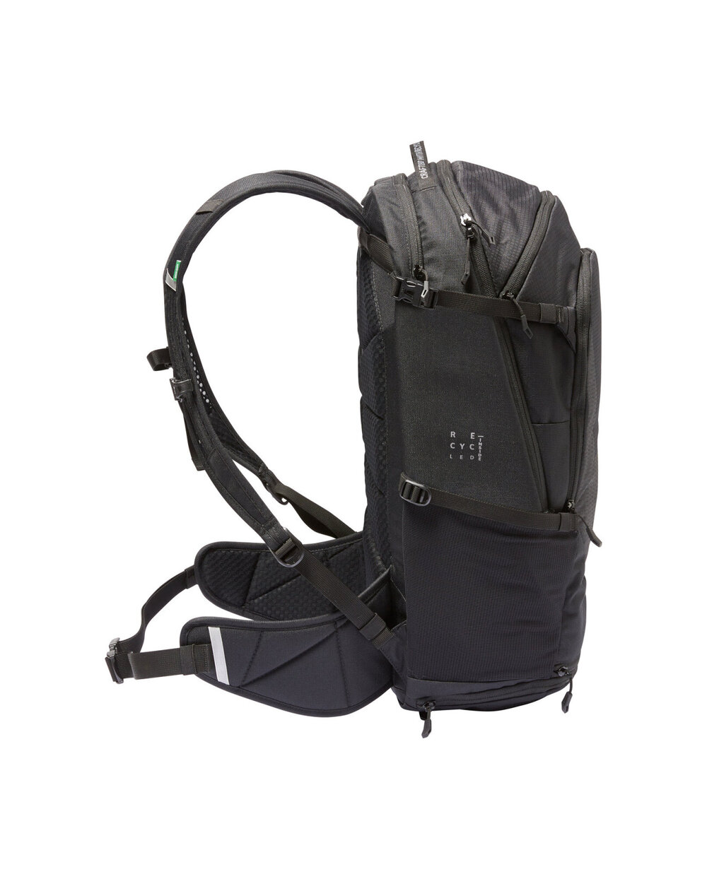 - vrecko na zips na pravej strane bedrového pásu, bočné stretchové vrecká, samostatná priehradka na hydratačný vak, kompresné popruhy na horných stranách, pláštenka v oddelenej spodnej priehradke a reflexné prvky