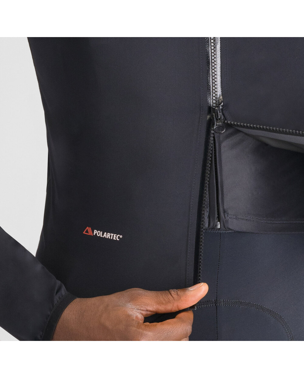 Dvojcestný zips – umožňuje lepšie vetranie a jednoduchý prístup k dresu pod bundou.
