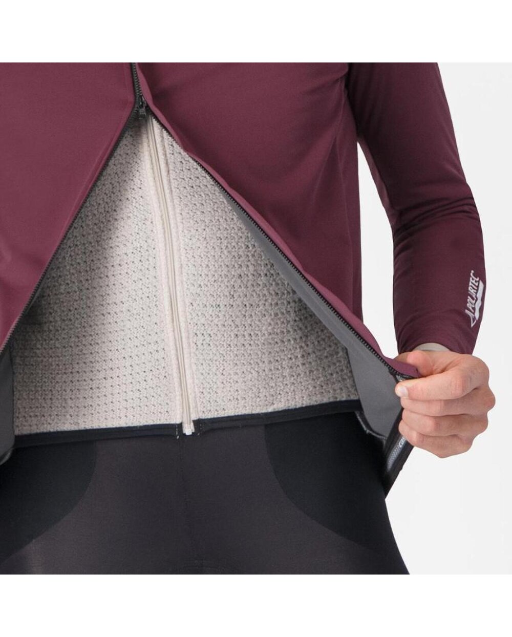 Vonkajšia vrstva vyrobená z exkluzívnej 150 g elektrostaticky spriadanej vzduchopriepustnej membrány Polartec® AirCore™ od spoločnosti Castelli poskytuje špičkovú priedušnosť