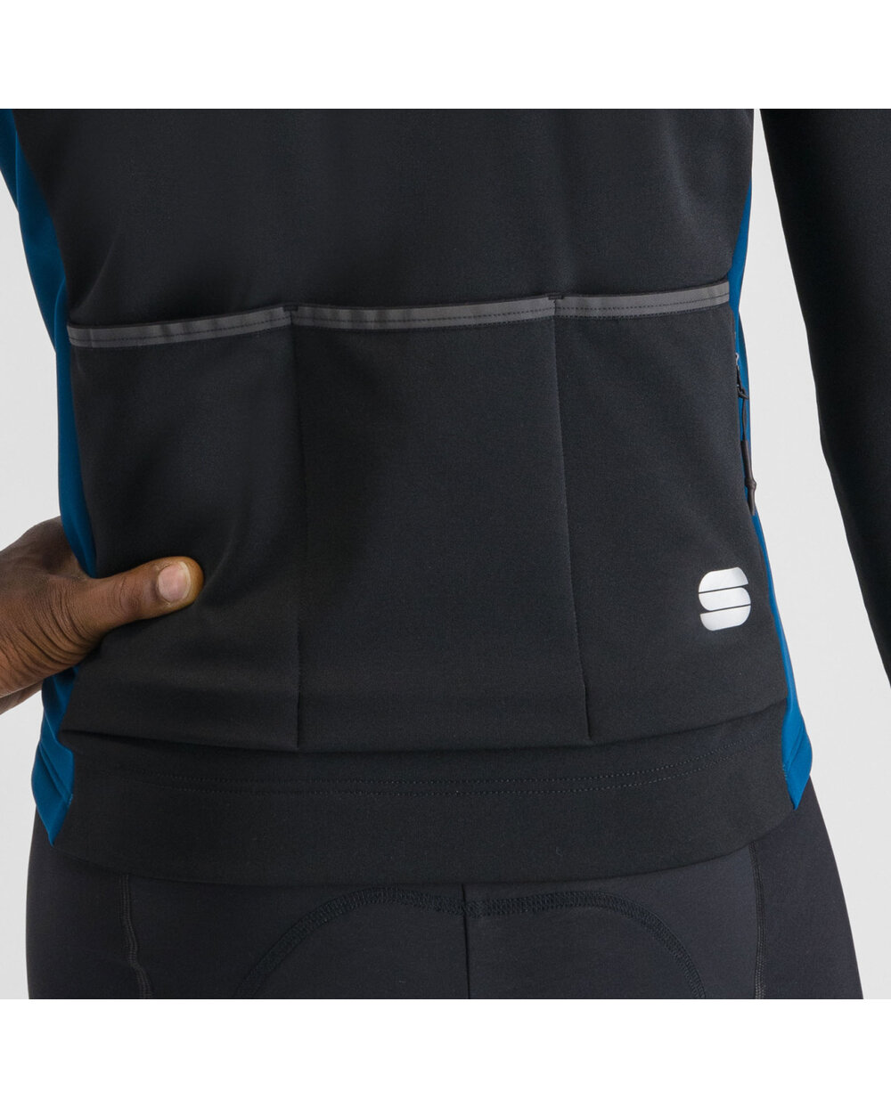 Zadná časť bundy a podpazušie sú vyrobené z elastickej česanej tkaniny, ktorá zaručuje optimálnu voľnosť pohybu a zároveň efektívne odvádza prebytočné teplo a pot. Tento materiál prispieva k regulácii telesnej teploty, čím sa zabraňuje prehrievaniu aj počas jazdenia vo vysokom tempe.
