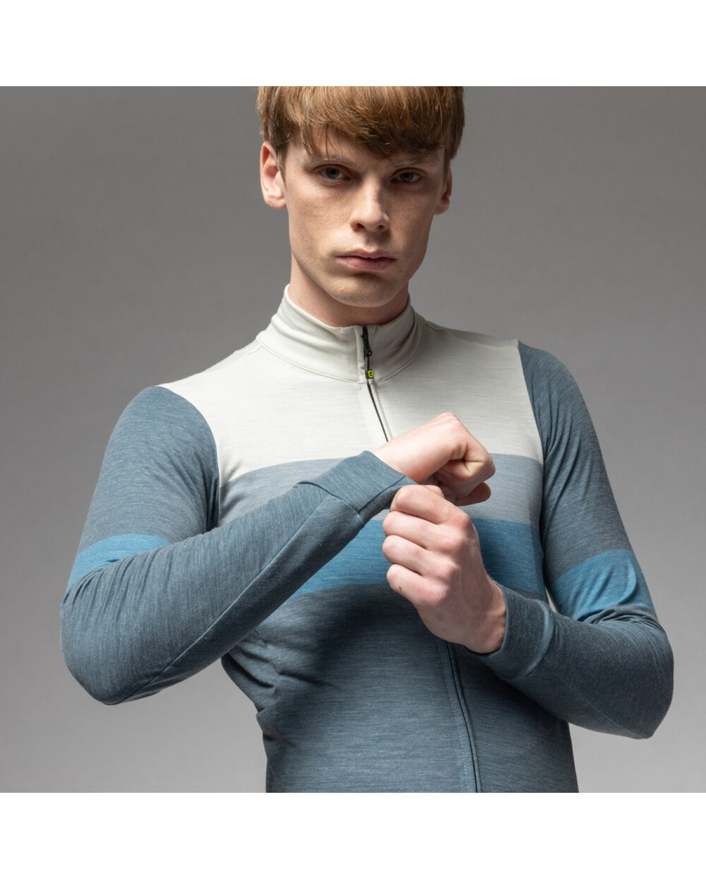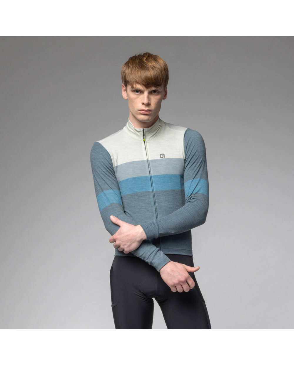Cyklistický dres s dlhým rukávom zimný Alé WOOL LINE modrá/šedá
