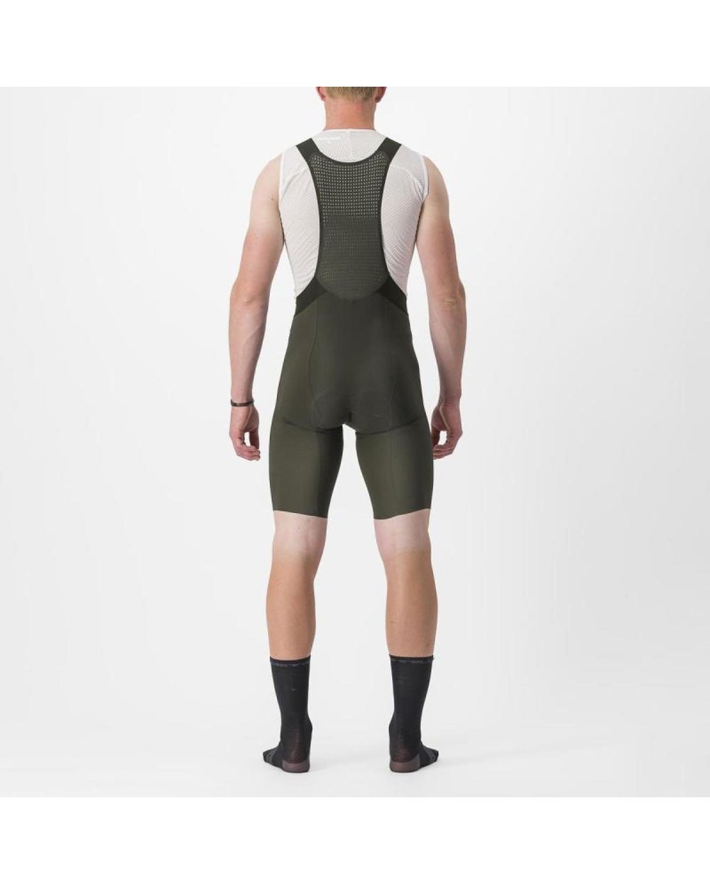 Prémiové látky nájdete aj na trakoch. Perforovaný chrbát vás udrží v chlade a tento diel je lepený, takže necítite hrúbku prešitého okraja. Traky majú presne modulovanú elasticitu, aby držali nohavice bezpečne na mieste bez toho, aby sa vám zarezávali do ramien. Do dizajnu sme preniesli ideu „menej je viac“ i vďaka minimalistickým laserom vypáleným logám s jemnou povrchovou úpravou. Vyzerajú tak prémiovo, ako sa v nich aj cítite. Môžete povedať, že každý komponent, každý steh a každý detail sme vytvorili s maximálnym nasadením. Lepšie kraťasy nenájdete.
