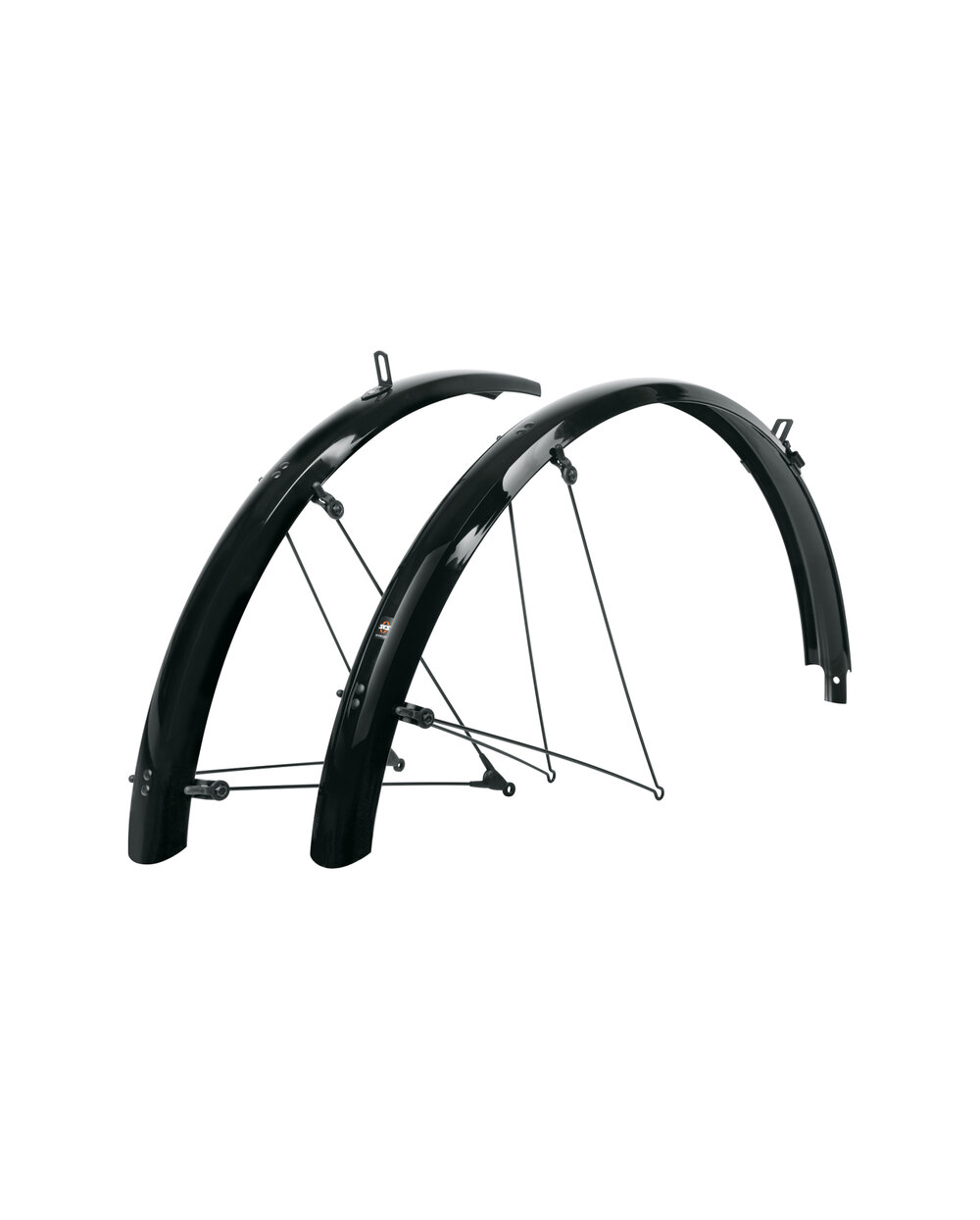 SKS Bluemels Basic je sada blatníkov vyrobená z robustnej sendvičovej konštrukcie. Ich lesklý dizajn vie zaujať, spoľahlivo chráni pred nečistotami a striekajúcou vodou. Vďaka flexibilnej sendvičovej konštrukcii, v ktorej sú ultrajemné hliníkové pásy zapustené do plastového povlaku, sú blatníky extrémne robustné, tuhé a odolné proti korózii. Slúžia ako vynikajúca ochrana vďaka montáži tesne pri plášti. Či už na poľných cestách alebo lesných cestách, blatníky BLUEMELS Basic ponúkajú vynikajúcu všestrannú ochranu. Bezpečnostný systém ESC odpojí vzpery v prípade zachytenia vetiev medzi špice kolesa, aby sa koleso nemohlo zaseknúť. Obsahuje sadu vzpier, pevný most z nerezovej ocele a montážny materiál. • Sendvičový dizajn vyrobené z hliníka/plastu