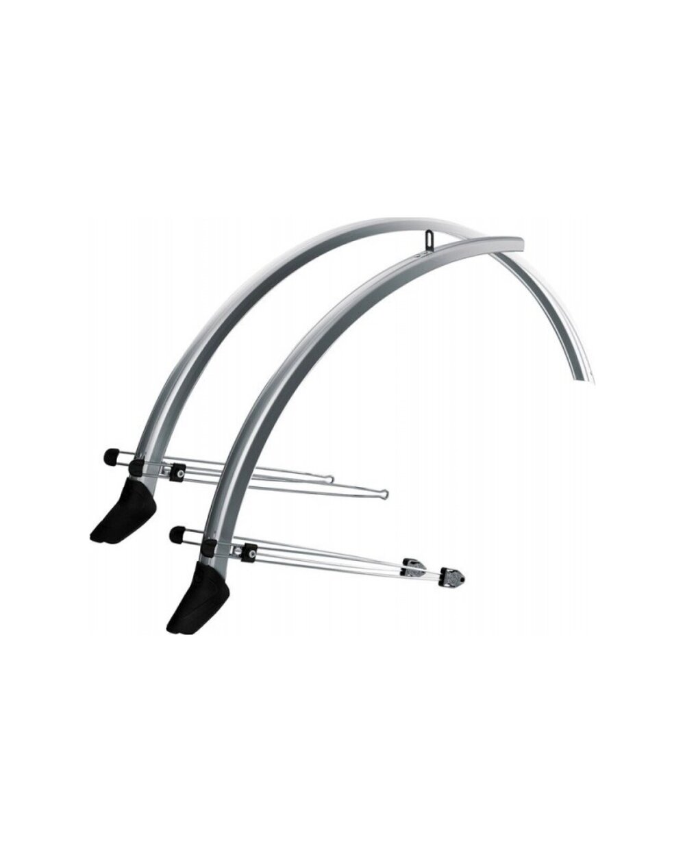 Sada blatníkov určená pre krosové a trekingové bicykle. Dvojité vzpery z ušľachtilej ocele a plastové predĺženie. Vhodné pre 28" kolesá Farba: strieborná/čierna Šírka: 45mm