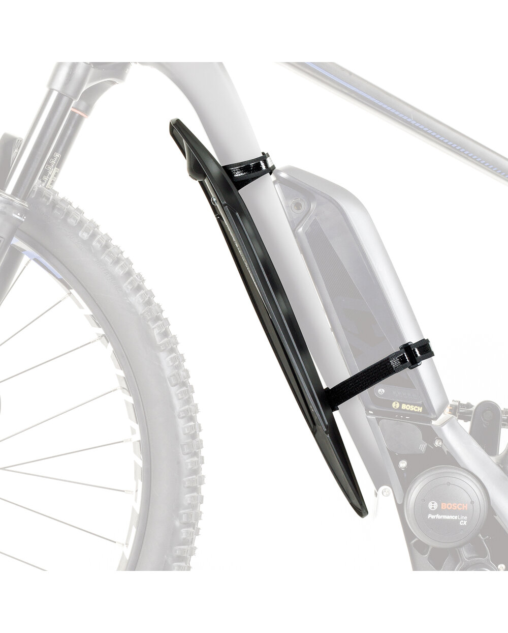 Predný blatník ideálny pre elektrobicykle a "pluskové" kolesá. Uchytenie na spodnú rámovú trubku, je možné uchytiť aj napriek rámovej batérií u elektrobicyklov. Dĺžka: 480 mm Max. šírka plášťa: 4,8"