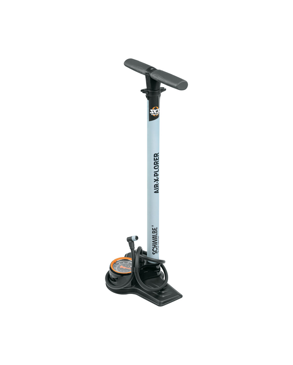 Pumpa SKS AIR-X-PLORER je navrhnutá pre jednoduché a efektívne hustenie plášťov. Jednou z jej hlavných predností je kompatibilita s ventilmi Schwalbe Clik Valve vďaka technológii CLIK TEC, ktorá umožňuje jednoduchú konverziu na tento nový ventilový systém.Medzi ďalšie praktické funkcie patrí: • Veľký a presný manometer – pre jednoduchú kontrolu tlaku • Ergonomicky tvarovaná rukoväť – s mäkkým úchopom pre pohodlné používanie • Optimalizovaná hlavica MV EASY – univerzálny systém MULTI VALVE kompatibilný s ventilmi Presta, Schrader aj Dunlop