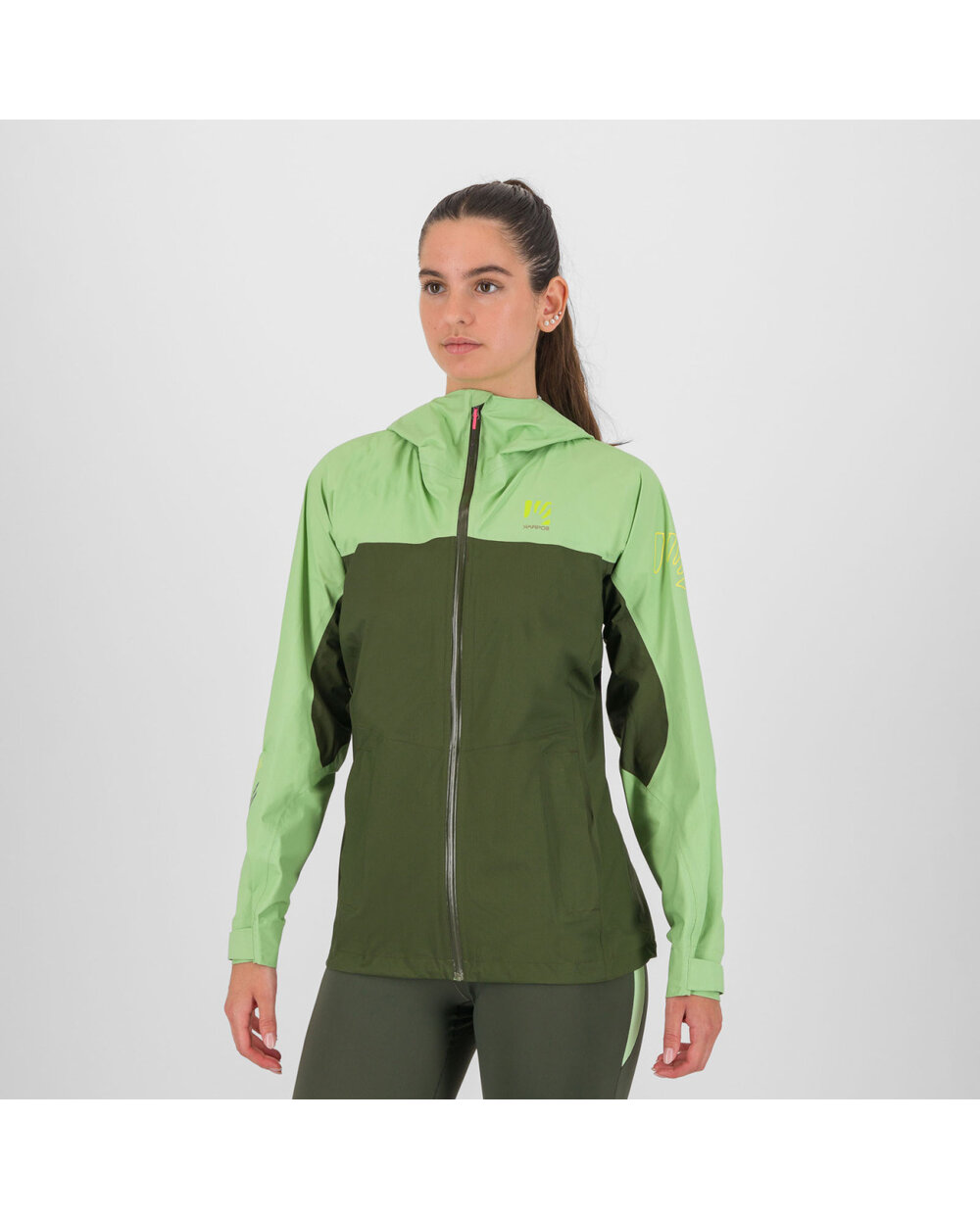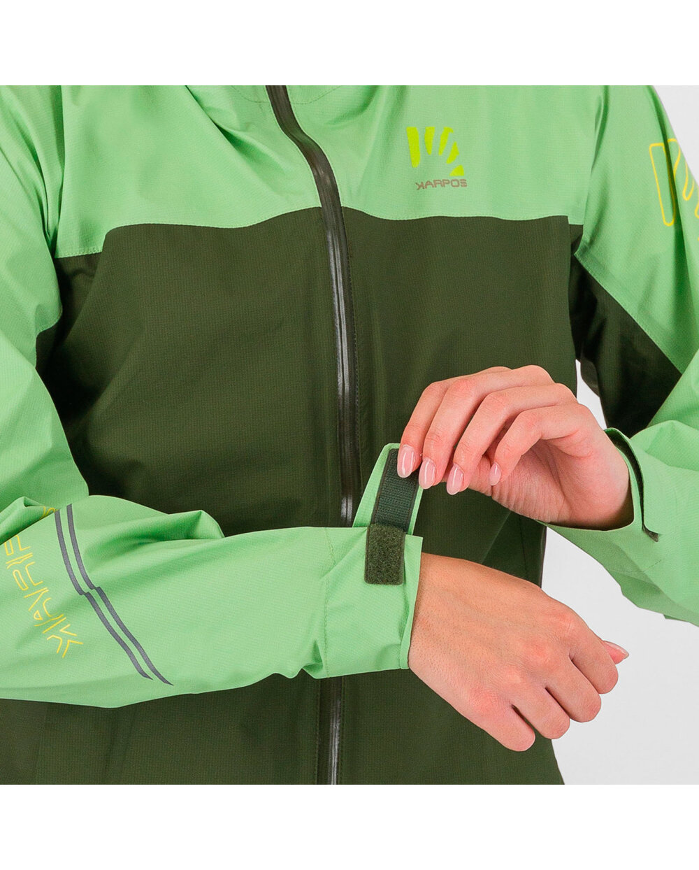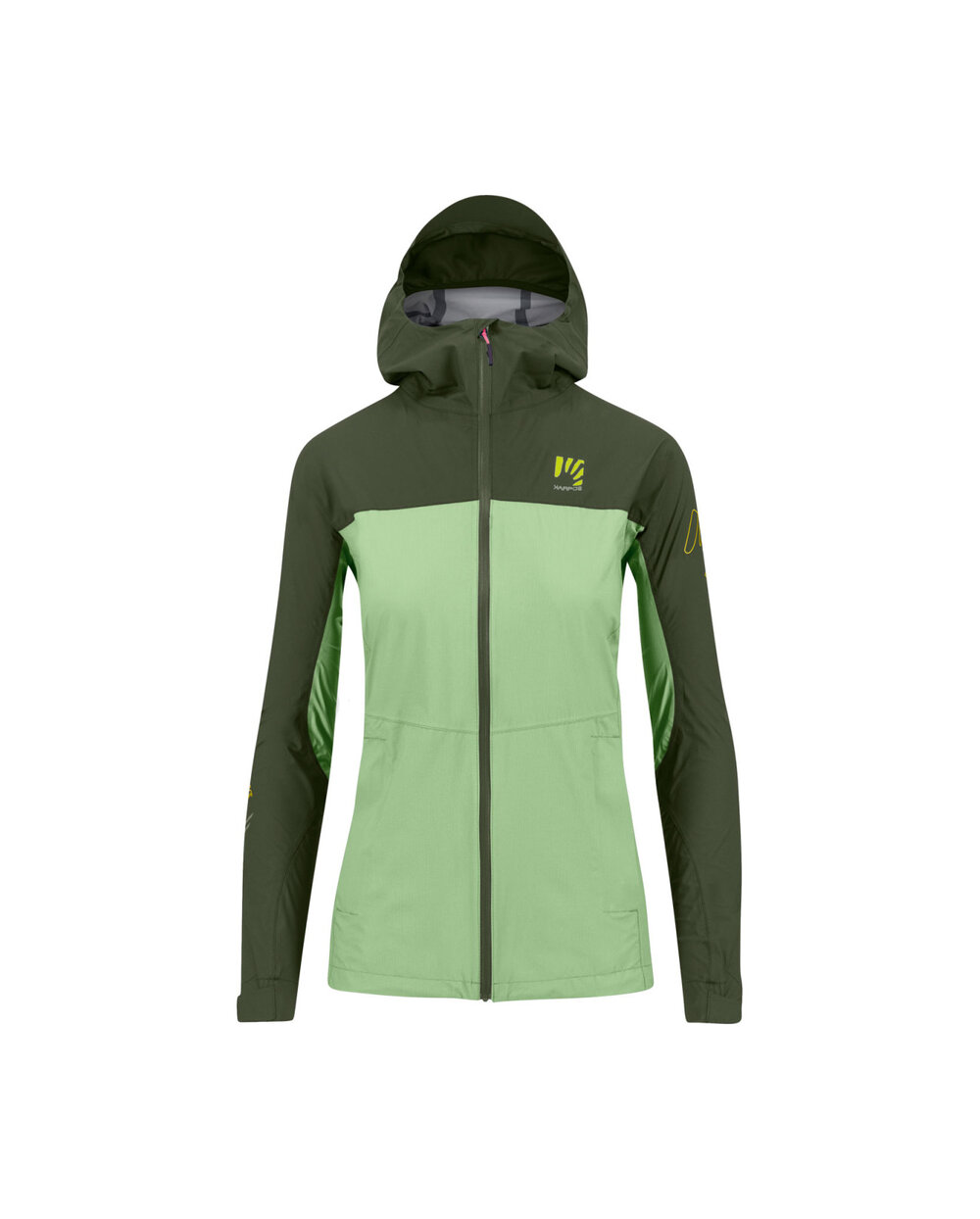 Dve predné vrecká s vodeodolnýmiYKK® zipsami poskytujú bezpečné uloženie drobností aj v nepriaznivom počasí. Pravé vrecko je navyše vybavené dvojcestným zipsom a slúži aj ako obal na zbalenie bundy do malých rozmerov.