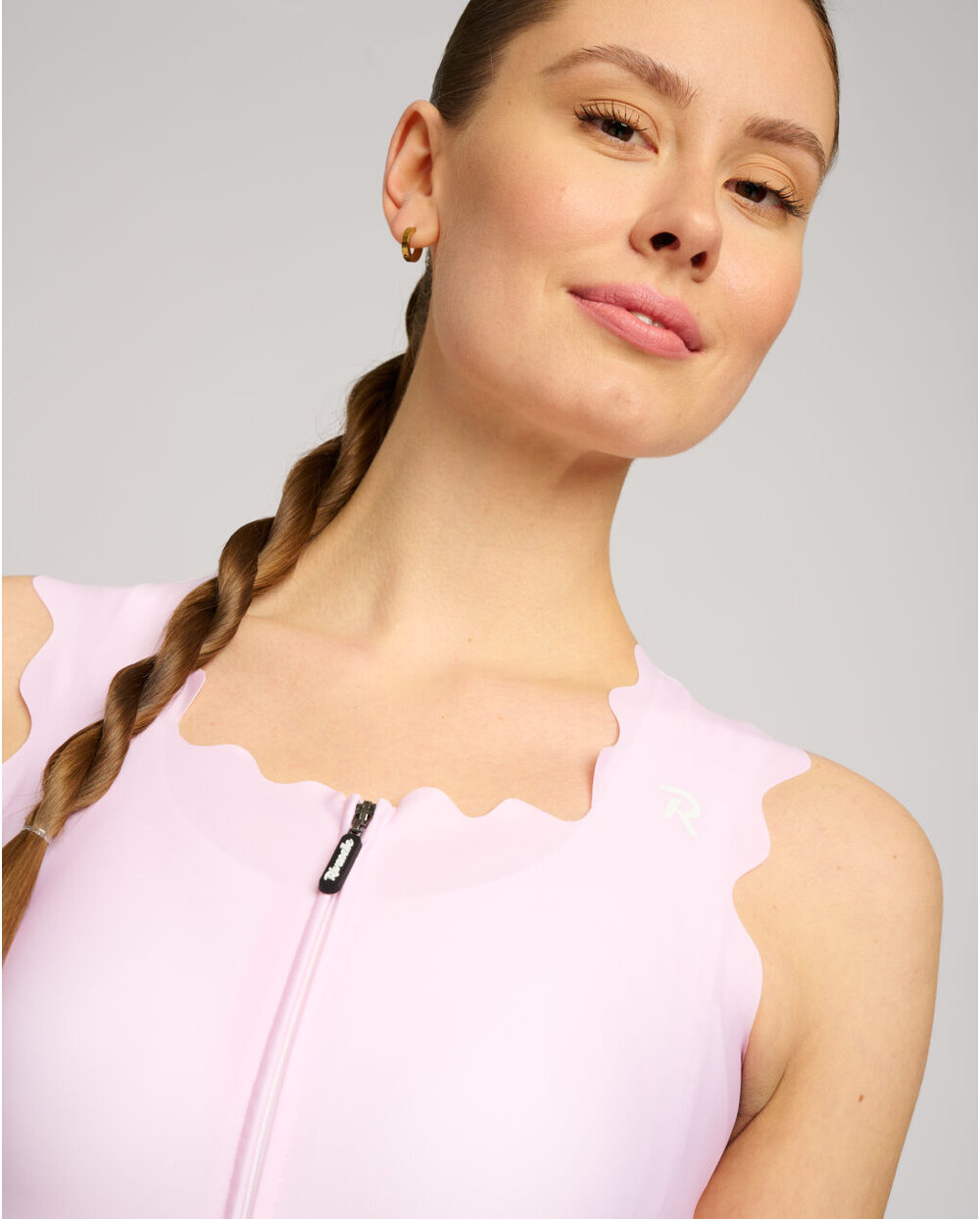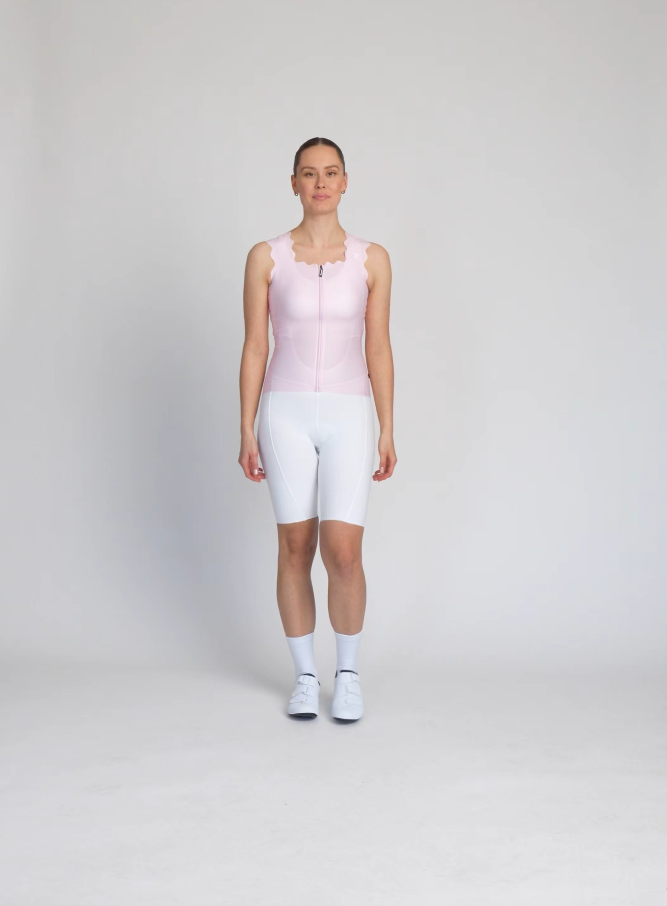 Cyklistický dres bez rukávov s dokonalým oblúkovým lemovaním, ktorý prináša full glam aj do cyklistických outfitov. Hrubšie vlnkové ramienka a štvorcový výstrih lichotia proporciám ramien aj každému typu dekoltu. Nechýba mu ani vybavenie, ktoré sa od kvalitného dresu očakáva. Celoplošný predný zips s ochranný prekrytím krku. Trojité vrecko s bezpečnostým vreckom na zips. Bezšvový lem s protišmykovou potlačou v zadnej časti dresu.