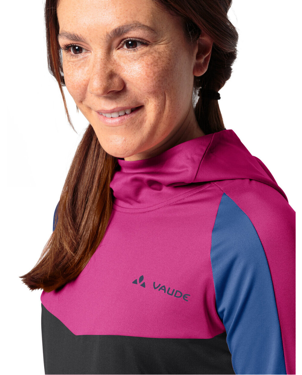 Cyklistický dres s dlhým rukávom zimný Vaude QUIMSA LS ružová/čierna/modrá