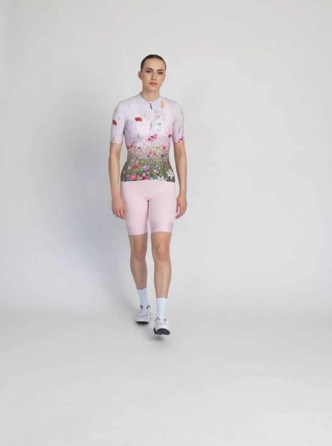 Tento dres je ako letná lúka v plnom kvete – živá, farebná, voňavá. Jemná rúžová obloha sa smerom nadol mení na explóziu divokých kvetov, maľovaných s citom, vrstvením a ľahkosťou štetca. Každý detail pôsobí, akoby vznikol spontánne, bez strojenosti – presne tak, ako príroda sama. Dizajn vznikol v spolupráci s výtvarníčkou Dášou Brnovou, ktorej tvorba je charakteristická snovou atmosférou, jemnou farebnosťou a organickými motívmi prírody. Jej rukopis vnáša do dresu emóciu, pohyb a ticho zároveň.