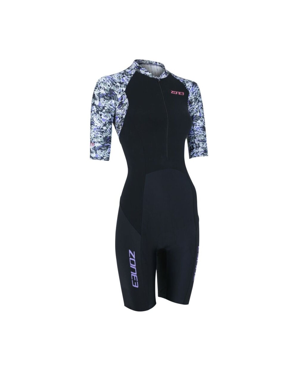 Zone3 Lava Short Sleeve Trisuit je prémiový dámsky triatlonový oblek určený pre náročné preteky aj dlhšie tréningy. Tento model pochádza z oceňovanej kolekcie Lava, ktorá je výsledkom dlhodobého vývoja a testovania v aerodynamickom tuneli aj medzi profesionálnymi atlétmi. Lava trisuit kombinuje pokročilé aerodynamické panely, vodoodpudivé úpravy a technické materiály, ktoré spoločne zlepšujú výkon vo všetkých troch disciplínach – plávaní, bicykli a behu.