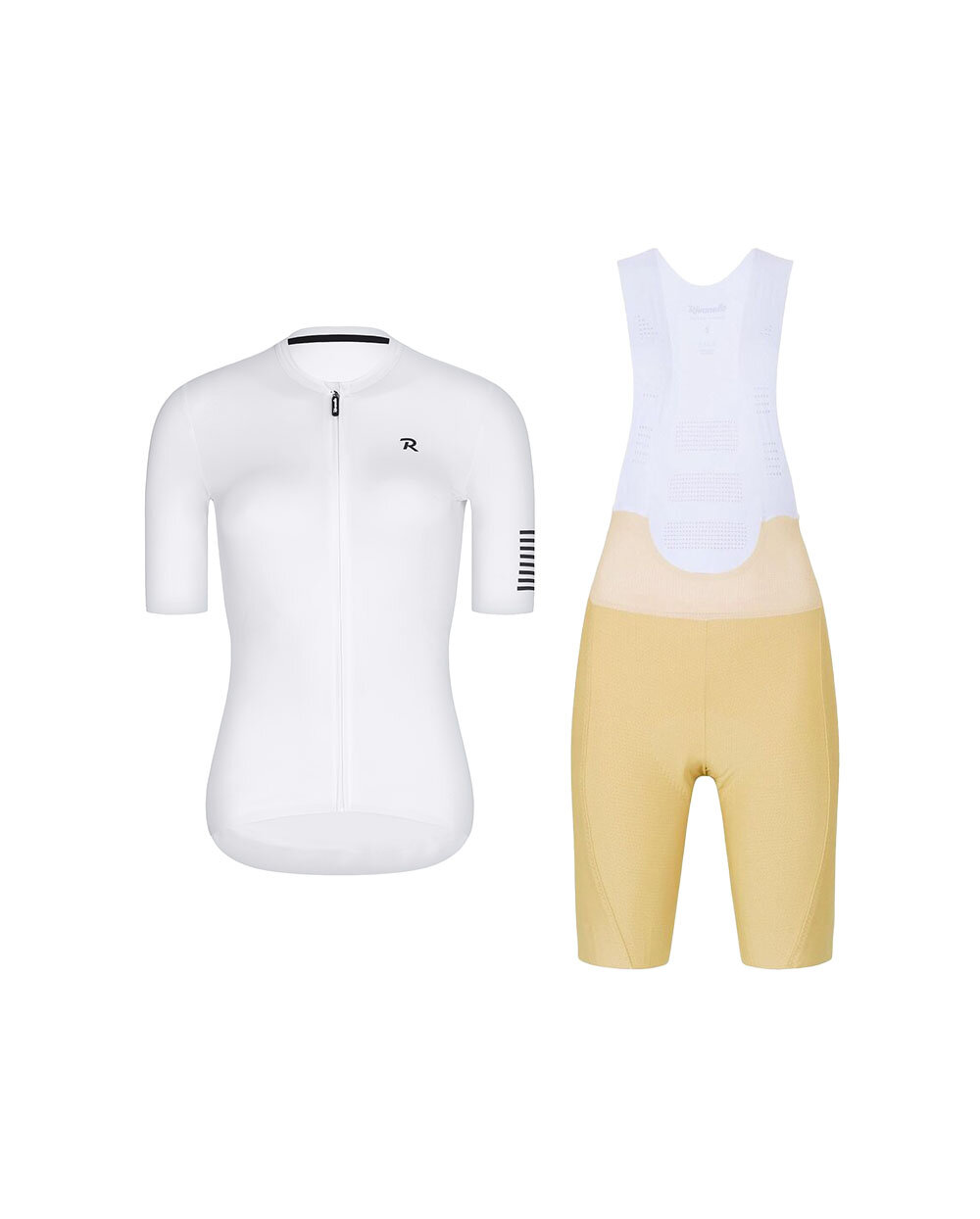 Dámsky cyklistický set Rivanelle VICTORIOUS LADY / NOVEL PRO je ideálnou voľbou pre cyklistky, ktoré hľadajú spojenie štýlu, pohodlia a vysokého výkonu. Kombinácia elegantného dresu s krátkym rukávom v bielej farbe a prémiových krátkych nohavíc s trakmi v béžovom prevedení vytvára harmonický outfit vhodný na tréningy, dlhé jazdy aj športové výzvy.